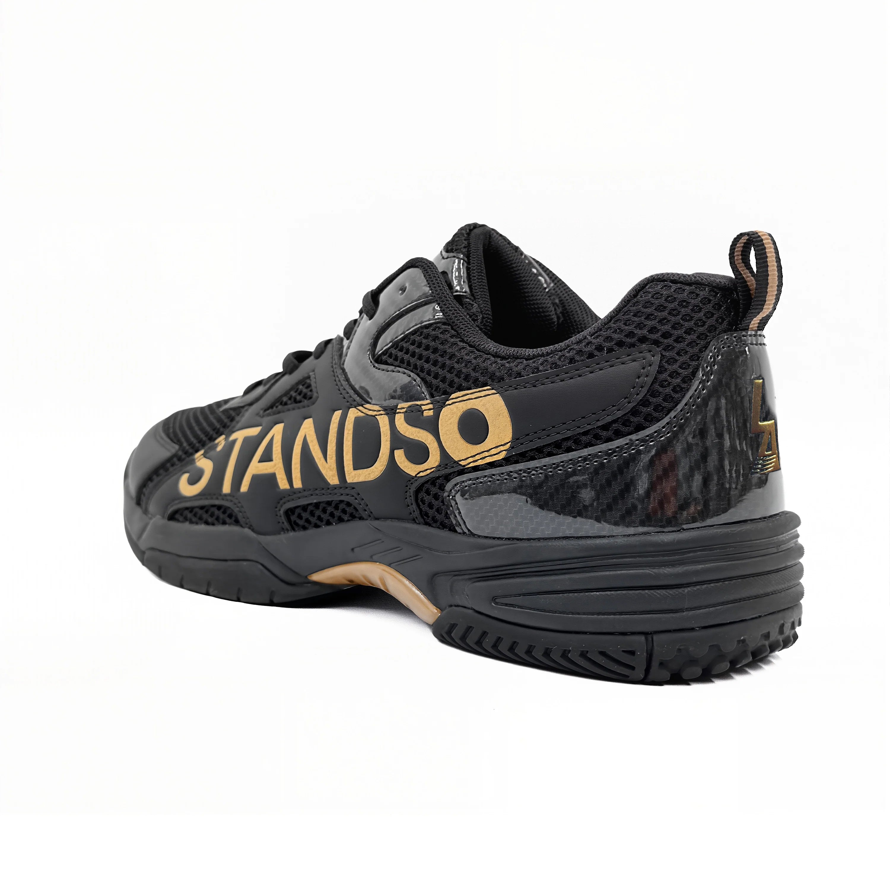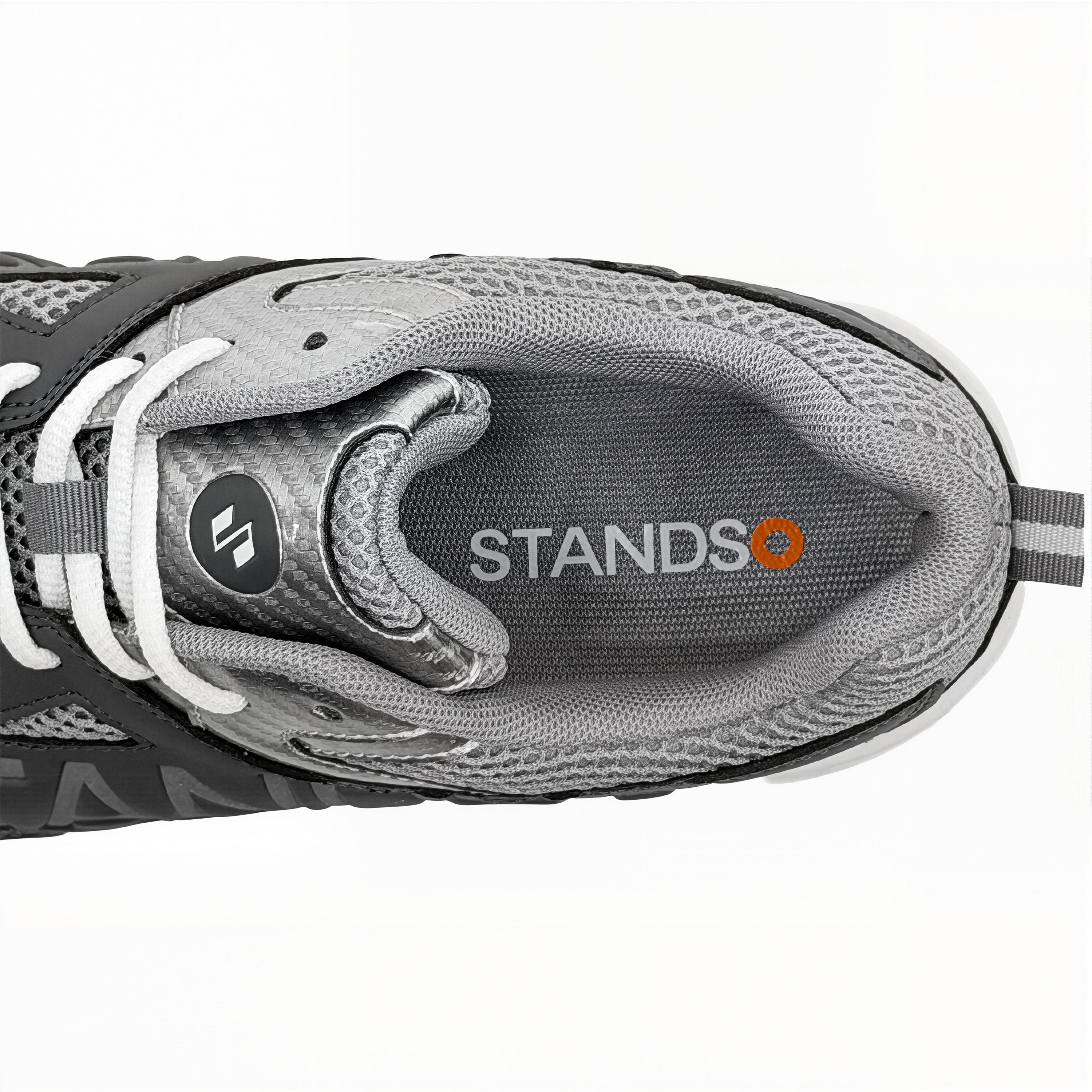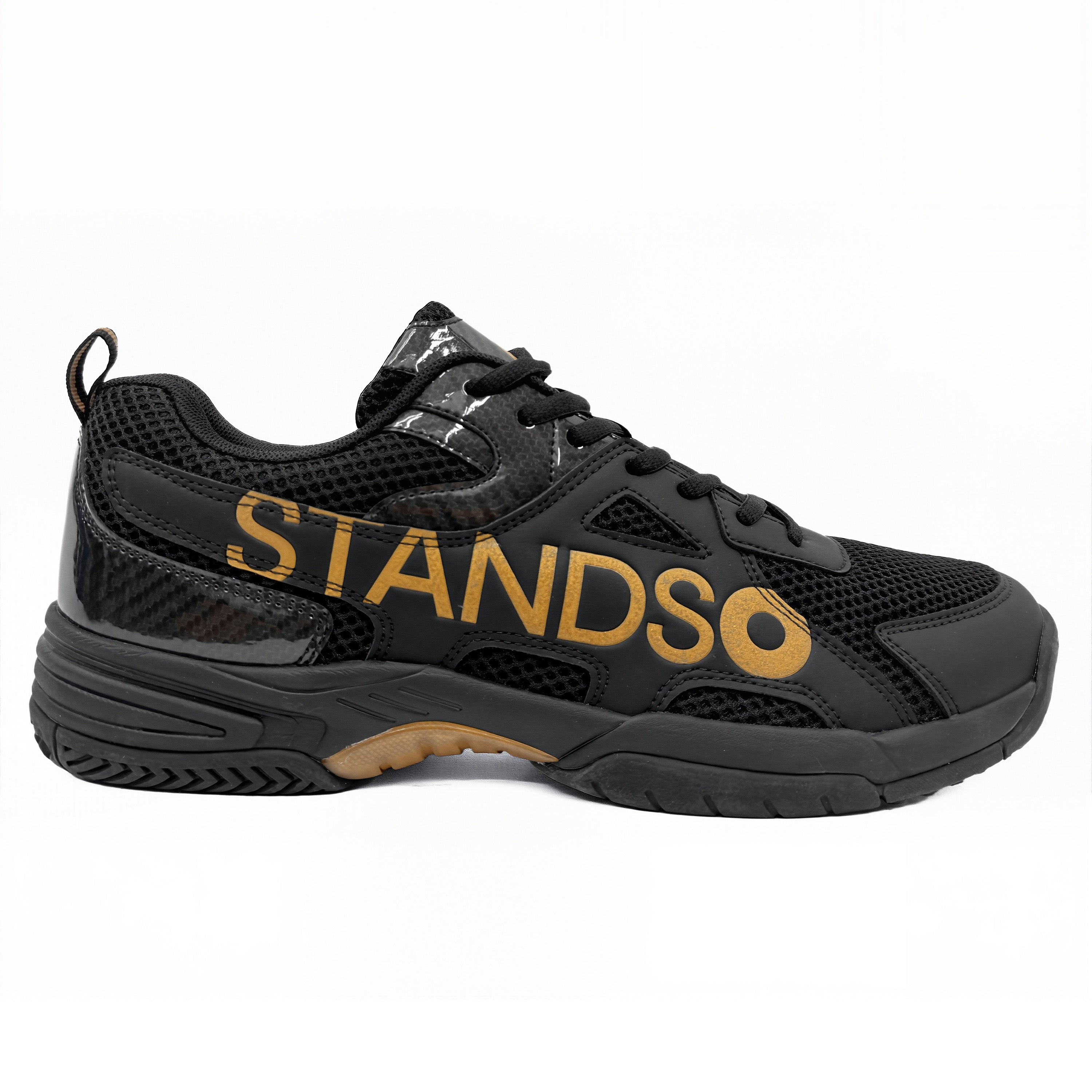 • Signature STANDSO Branding — Bold side logo and heel emblem