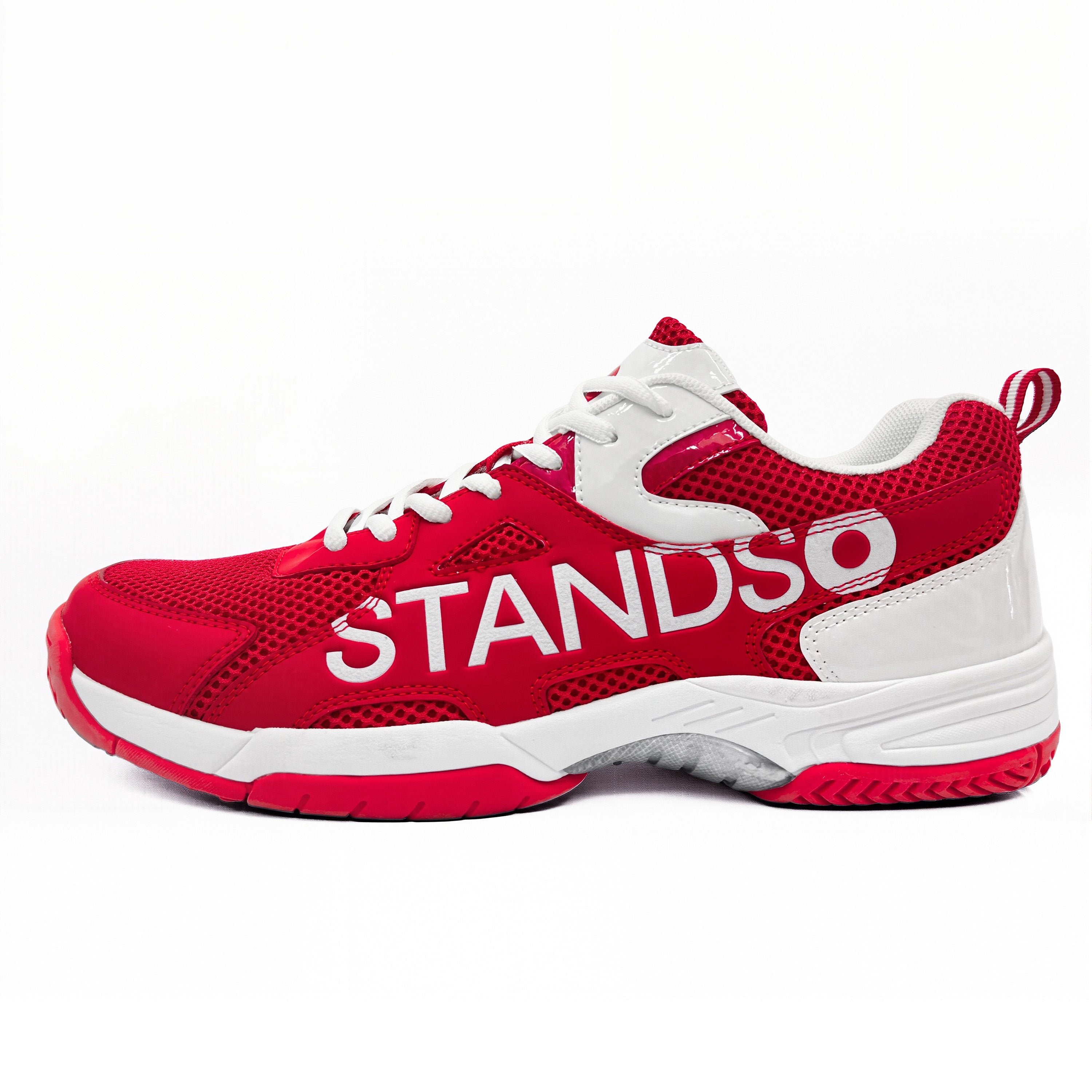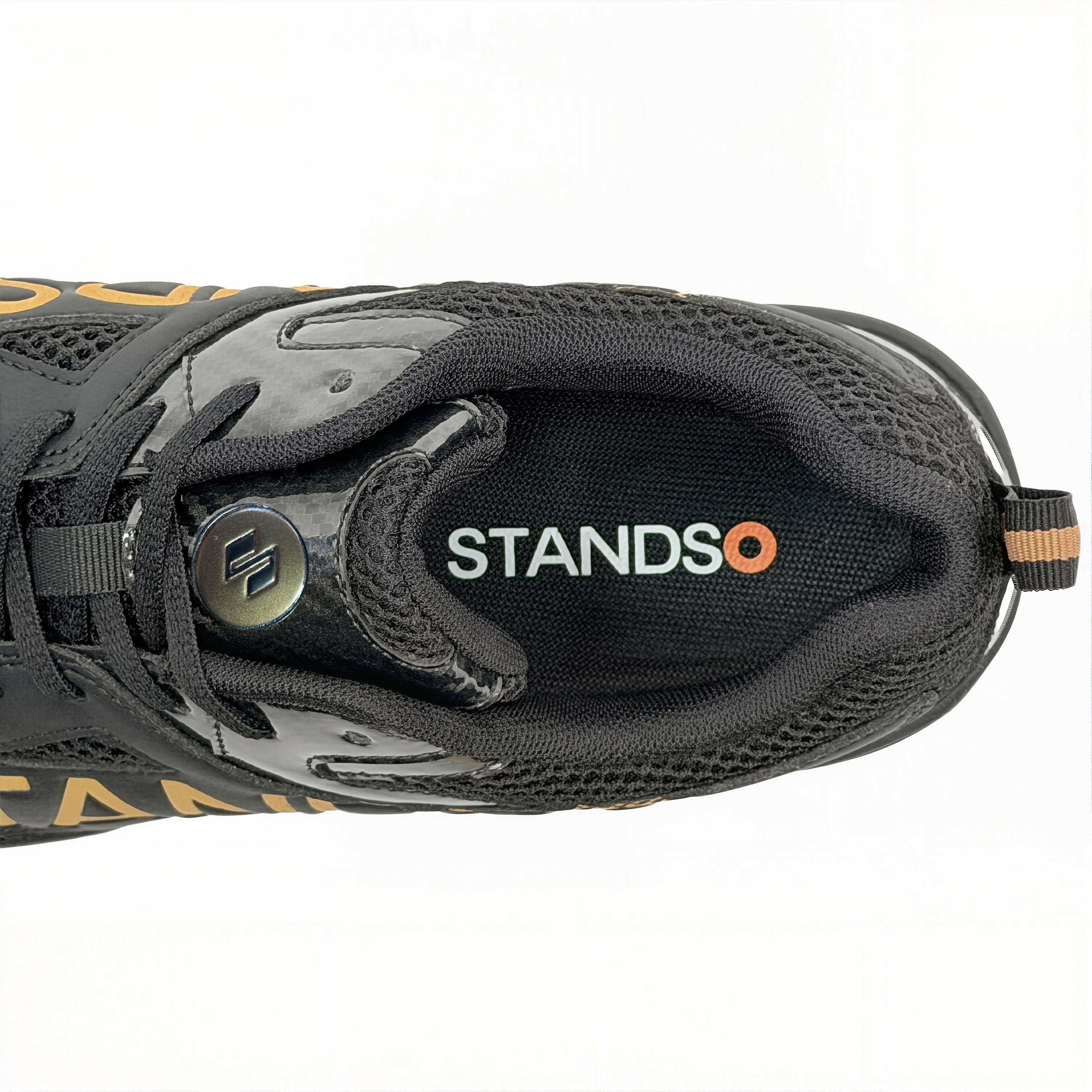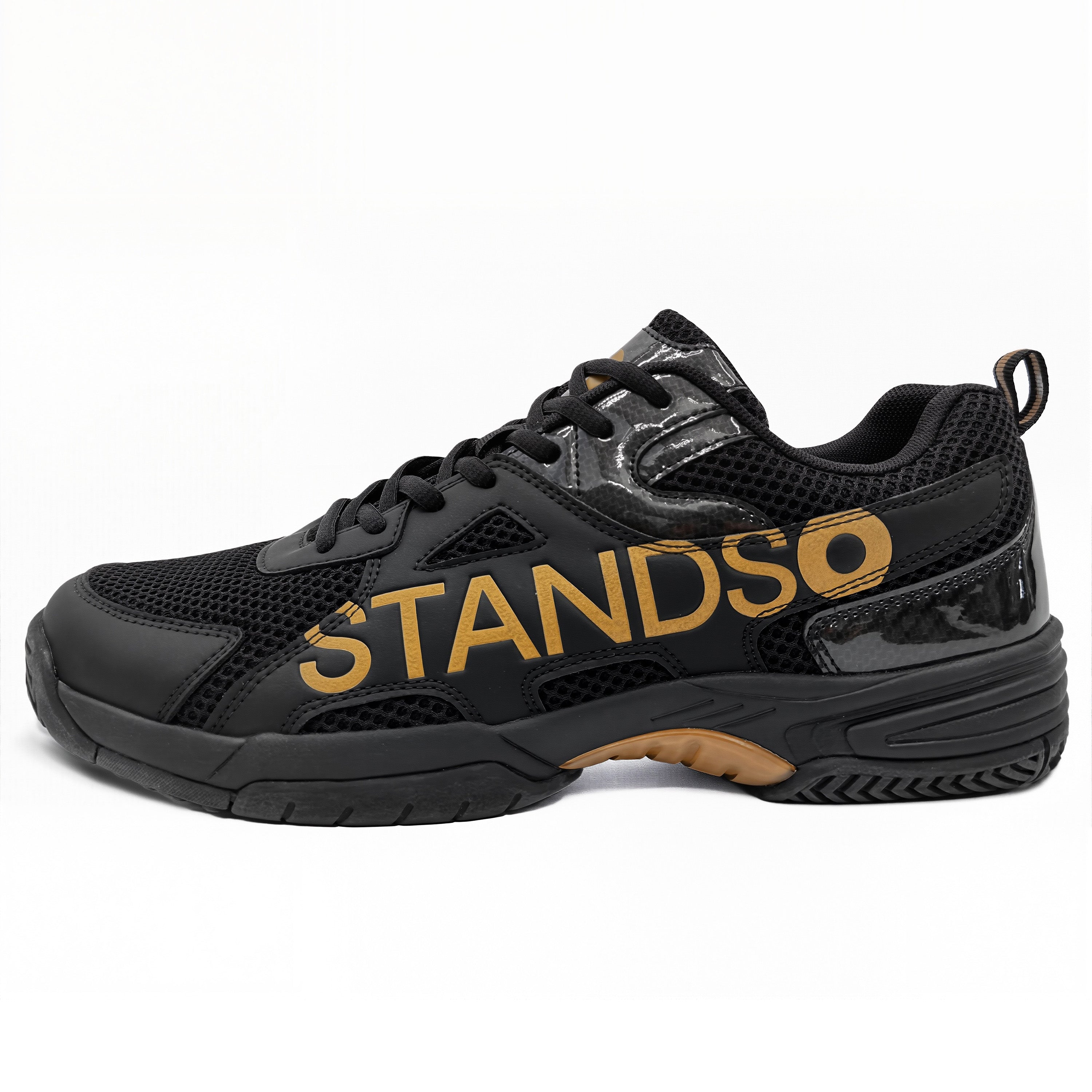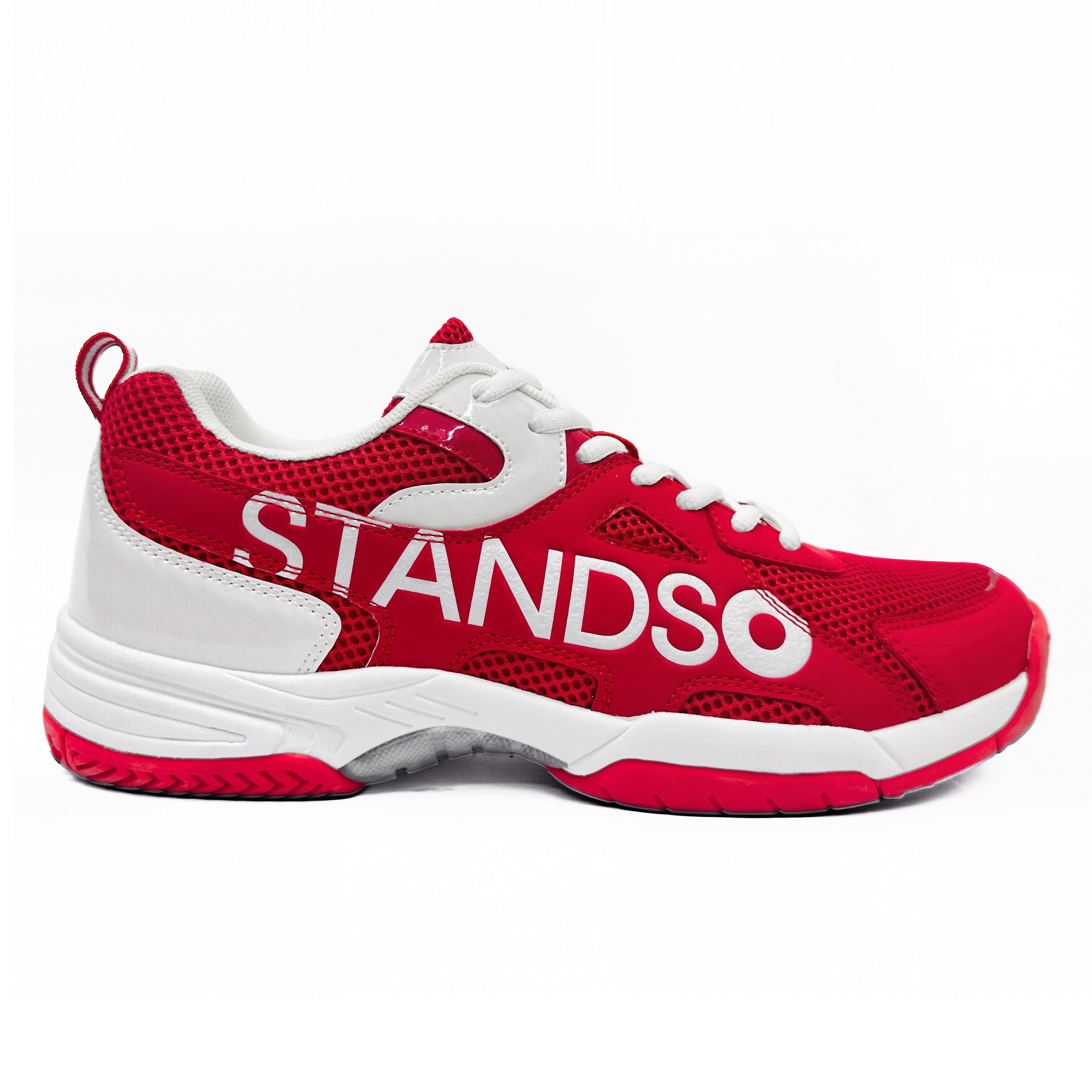 • Signature STANDSO Branding — Bold side logo and heel emblem